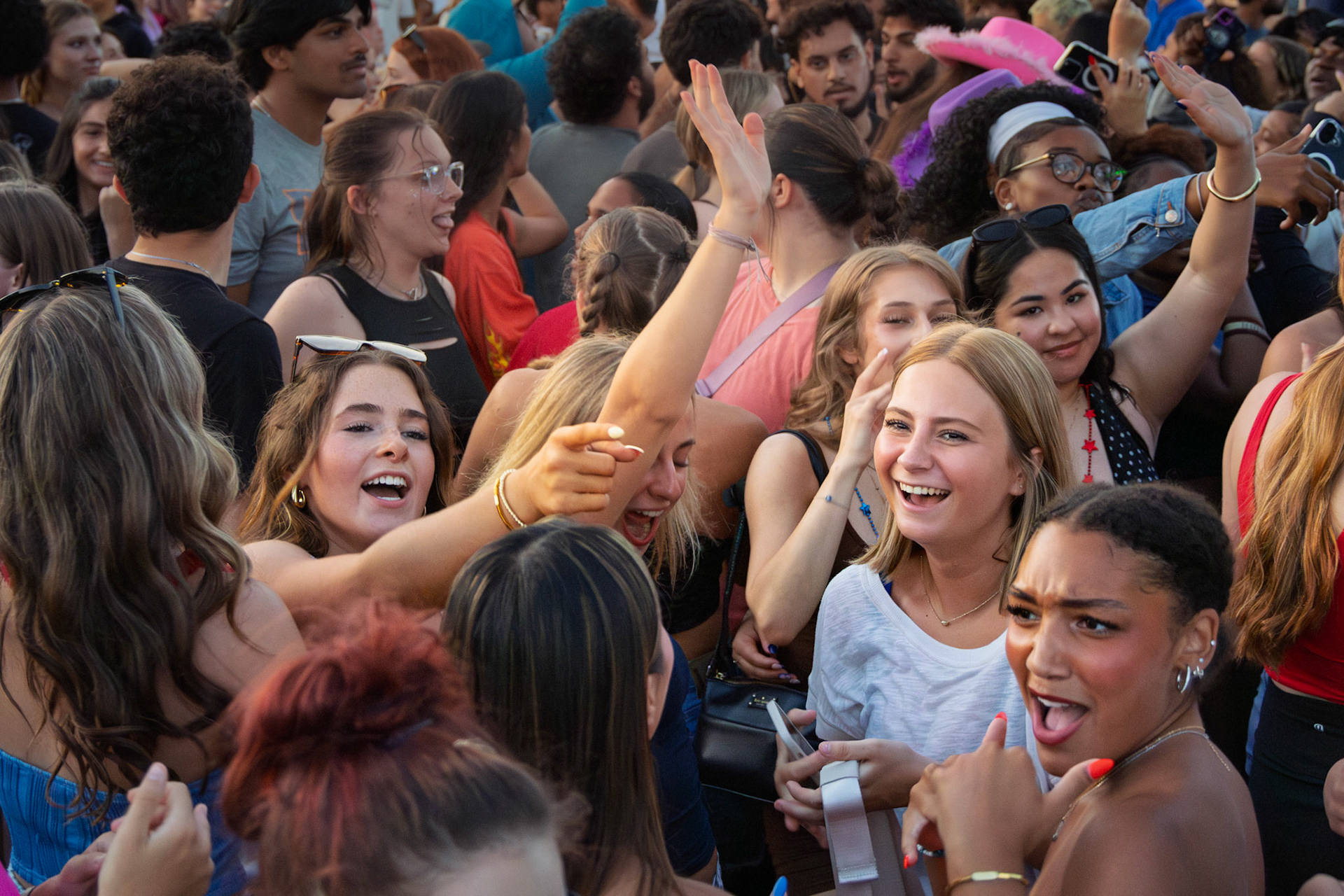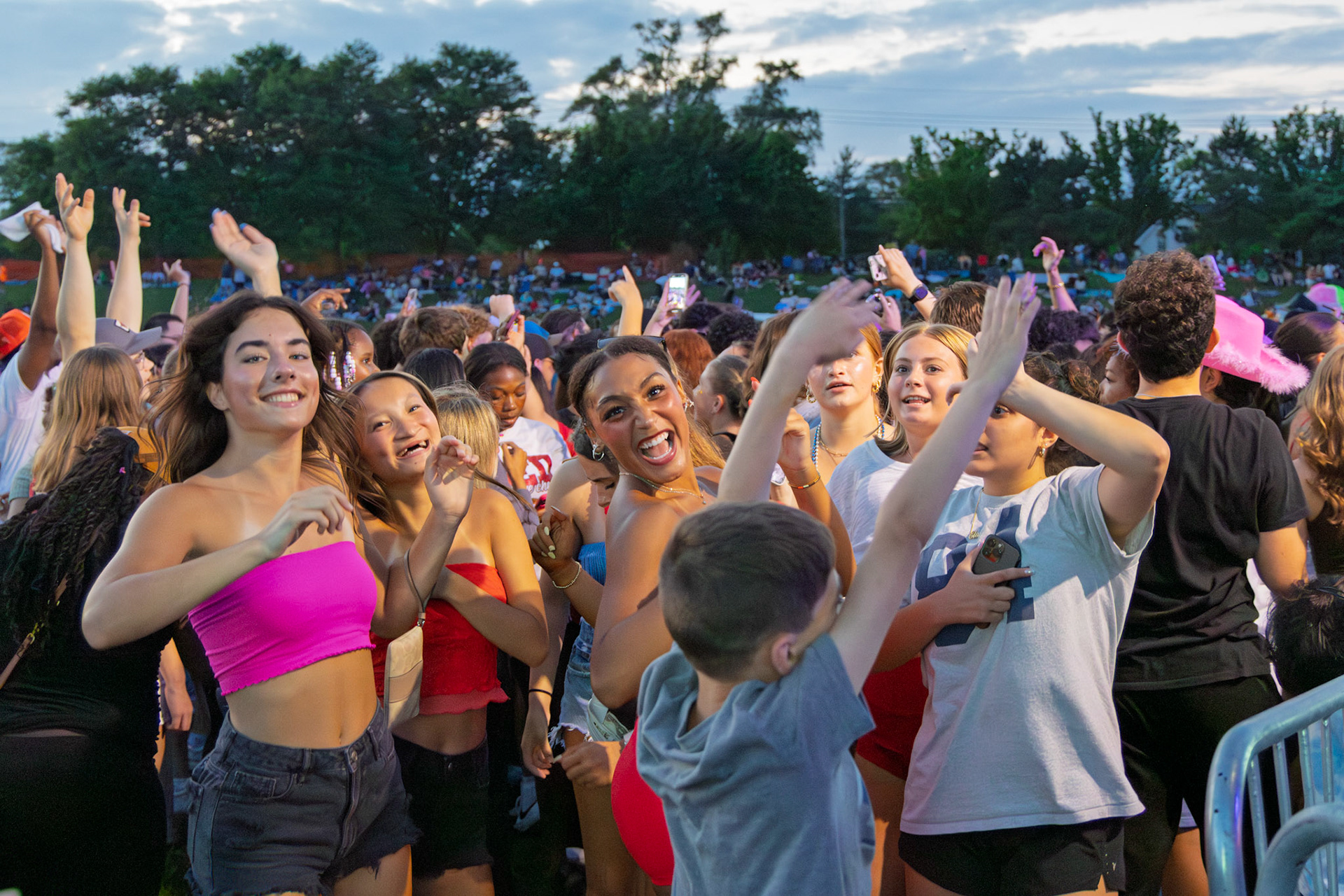 A sea of blue. (The picture is very scenery overloading and thats on purpose because I wanted to emphasize the younger kids and the cheerleaders with the sign in the back of "Together we are falcons", thought itd be cool to bring some meaning to the photo))